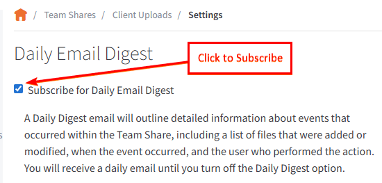 Optional: You can receive a daily digest on what folders were added, updated etc.