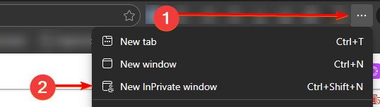 Top Right / Click on 3 Dots / Click on New InPrivate Window